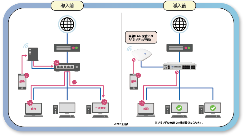 Anti Spreader(アンチ・スプレッダー)は対策が困難だった「拡散防止」「二次被害防止」 に最適な「Security Access Point」です。
