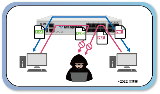 通信傍受の代表的な攻撃である「ARPスプーフィング攻撃」をアクセスネットワーク層で検知・遮断できます。