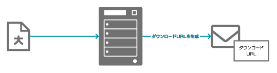 通常のメールでは送信できない容量のファイルを届けたい時に便利な機能です。 該当ファイルをダウンロードできるURLを生成し、そのURLをメールで送信することで相手はファイルを該当ファイルをダウンロードすることができます。 また、ファイルのダウンロードにはパスワードをつけることができ、ダウンロード可能日数も変更することができます。