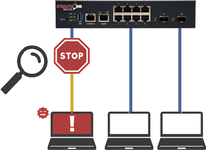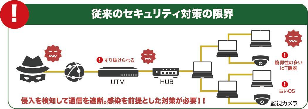 拠点に1台設置すれば、万が一マルウェアに感染しても、悪意のある通信をシャットアウトします。